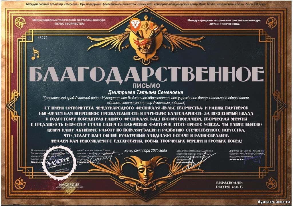 Добро пожаловать на официальный сайт МБОУ ДО «Детско-юношеский центр Ачинского района»